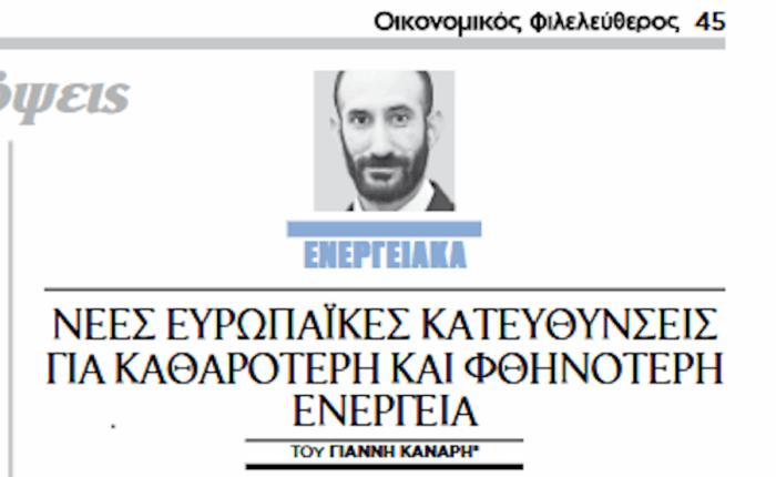Οικονομικός Φιλελεύθερος (19/10/2025): “Νέες ευρωπαϊκές κατευθύνσεις για καθαρότερη και φθηνότερη ενέργεια“. Άρθρο του Λειτουργού, Τμήμα Ενέργειας και Περιβάλλοντος ΟΕΒ, Γιάννη Κανάρη.