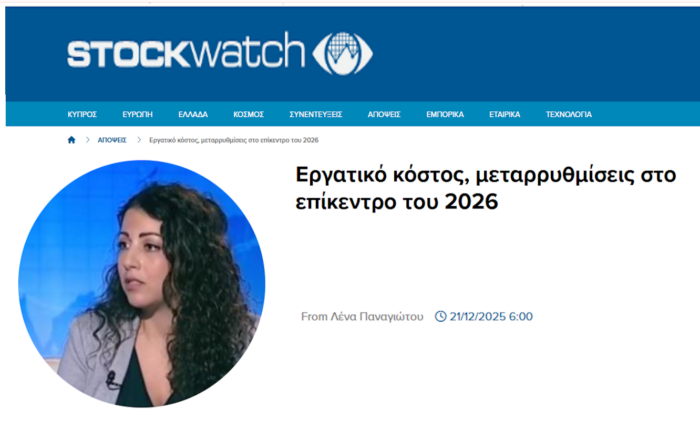 Stockwatch (21/12/2025): “Εργατικό κόστος, μεταρρυθμίσεις στο επίκεντρο του 2026”  Άρθρο της Βοηθού Γενικής Διευθύντριας ΟΕΒ, Λένας Παναγιώτου.
