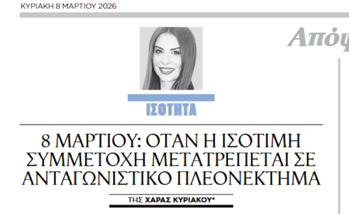Οικονομικός Φιλελεύθερος (08/03/2026): “8 Μαρτίου: Όταν η ισότιμη συμμετοχή μετατρέπεται σε ανταγωνιστικό πλεονέκτημα”