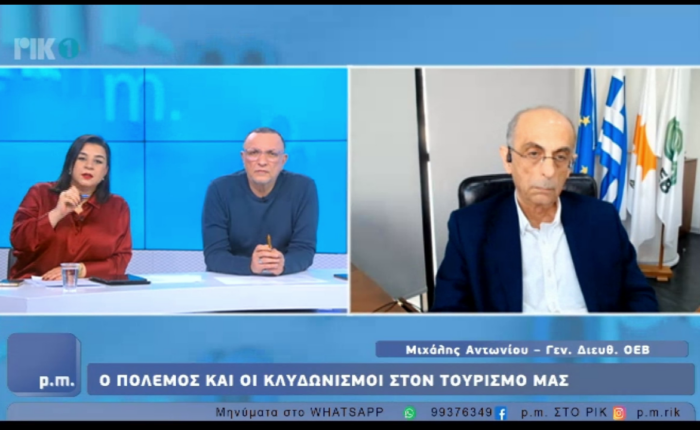 p.m. στο ΡΙΚ (12/03/2026): Οι επιπτώσεις του πολέμου στον τουρισμό. Συζήτηση με τον ΓΔ ΟΕΒ Μιχάλη Αντωνίου.