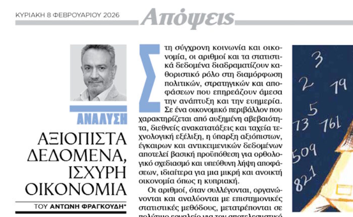 Οικονομικός Φιλελεύθερος (08/02/2026): “Αξιόπιστα Δεδομένα, Ισχυρή Οικονομία”. Άρθρο του Διευθυντή, Τμήμα Οικονομίας και Διοίκησης ΟΕΒ, Αντώνη Φραγκούδη.