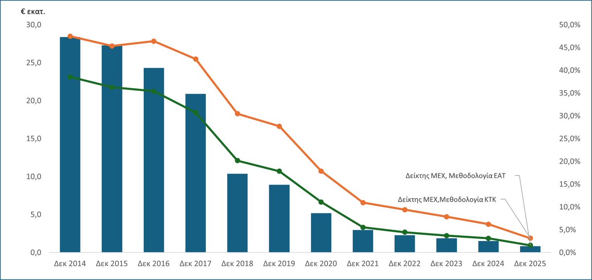 Τον Δεκέμβριο του 2025, το κυπριακό τραπεζικό σύστημα κατέγραψε ένα σημαντικό ορόσημο. Για πρώτη φορά μετά το 2014, όταν ο ορισμός των Μη Eξυπηρετούμενων Χορηγήσεων εναρμονίστηκε σε επίπεδο Ευρωπαϊκής Ένωσης, ο σχετικός δείκτης, βάσει της μεθοδολογίας που εφαρμόζεται στον Πίνακα
