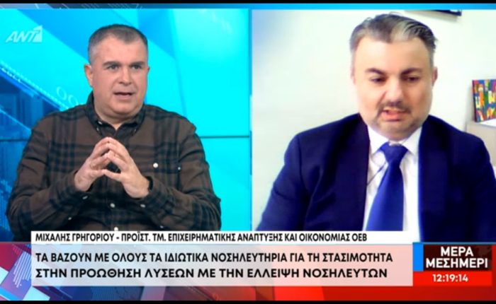 ANT1, Mera Mesimeri (03/02/2026): Stagnation in finding nursing staff. Intervention by the Head of the Business Development Department of OEB, Michalis Grigoriou.