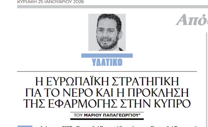 Oikonomikos Phileleftheros (25/01/2026): “The European water strategy and the challenge of implementation in Cyprus”