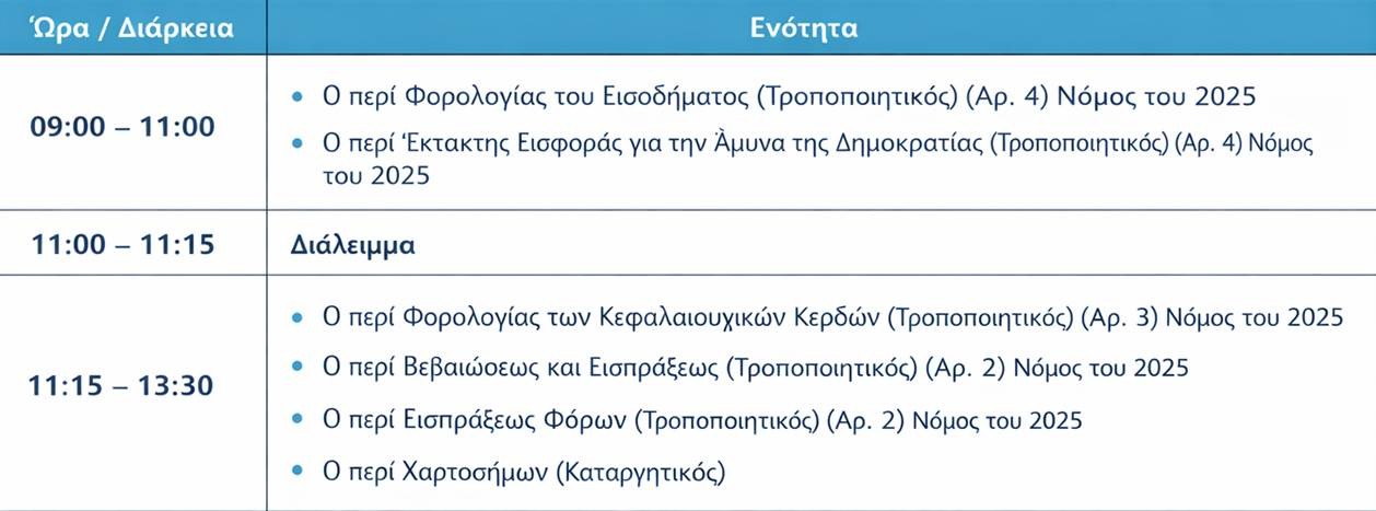 Για διευκόλυνση όλων των ενδιαφερομένων, τα Webinars θα πραγματοποιηθούν με το ίδιο περιεχόμενο μέσω της ηλεκτρονικής πλατφόρμας Zoom στις πιο κάτω ημερομηνίες: