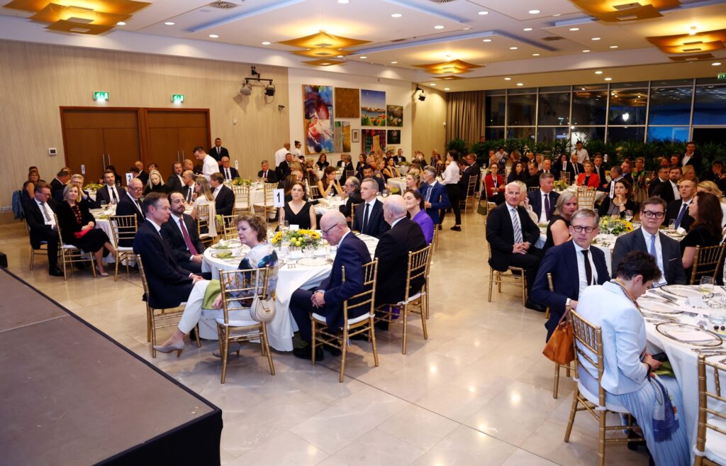 – Το βράδυ της 20ης Νοεμβρίου παρατέθηκε επίσημο δείπνο από την BusinessEurope σε όλους τους συμμετέχοντες στη Σύνοδο. Το δείπνο διεξήχθη στην αίθουσα εκδηλώσεων του Προεδρικού Μεγάρου την οποία ευγενώς παραχώρησε η Προεδρία της Δημοκρατίας και σε αυτή παρέστη επ’ ολίγον ο Πρόεδρος Χριστοδουλίδης και οι Υπουργοί Οικονομικών και Ενέργειας κκ Κεραυνός και Παπαναστασίου αντίστοιχα καθώς και οι Υφυπουργοί παρά τω Προέδρω και Ευρωπαϊκών Θεμάτων κκ Πική και Ραουνά αντίστοιχα.