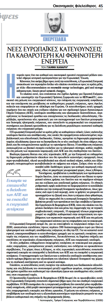 Άρθρο του Λειτουργού, Τμήμα Ενέργειας και Περιβάλλοντος ΟΕΒ, Γιάννη Κανάρη.