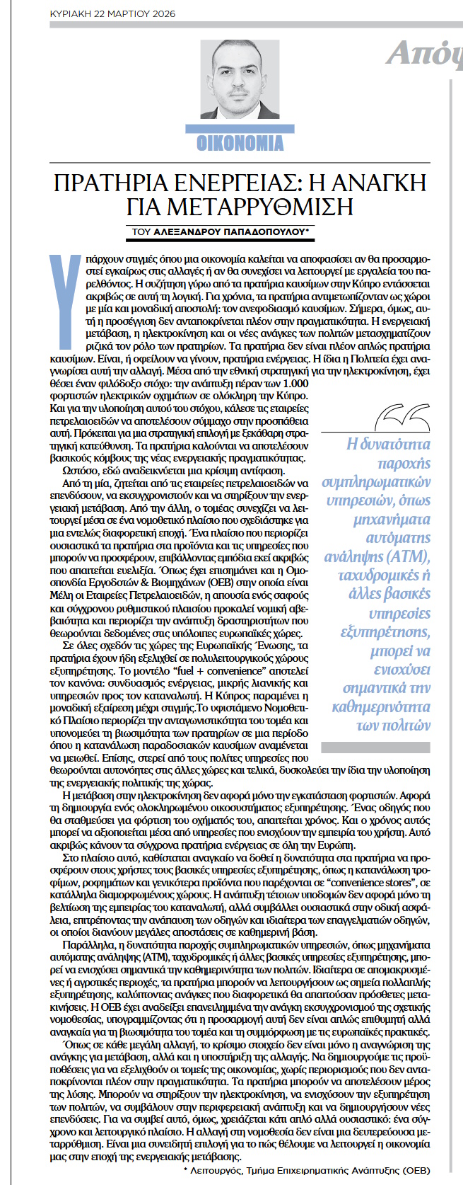 “Πρατήρια ενέργειας: Η ανάγκη για μεταρρύθμιση“.