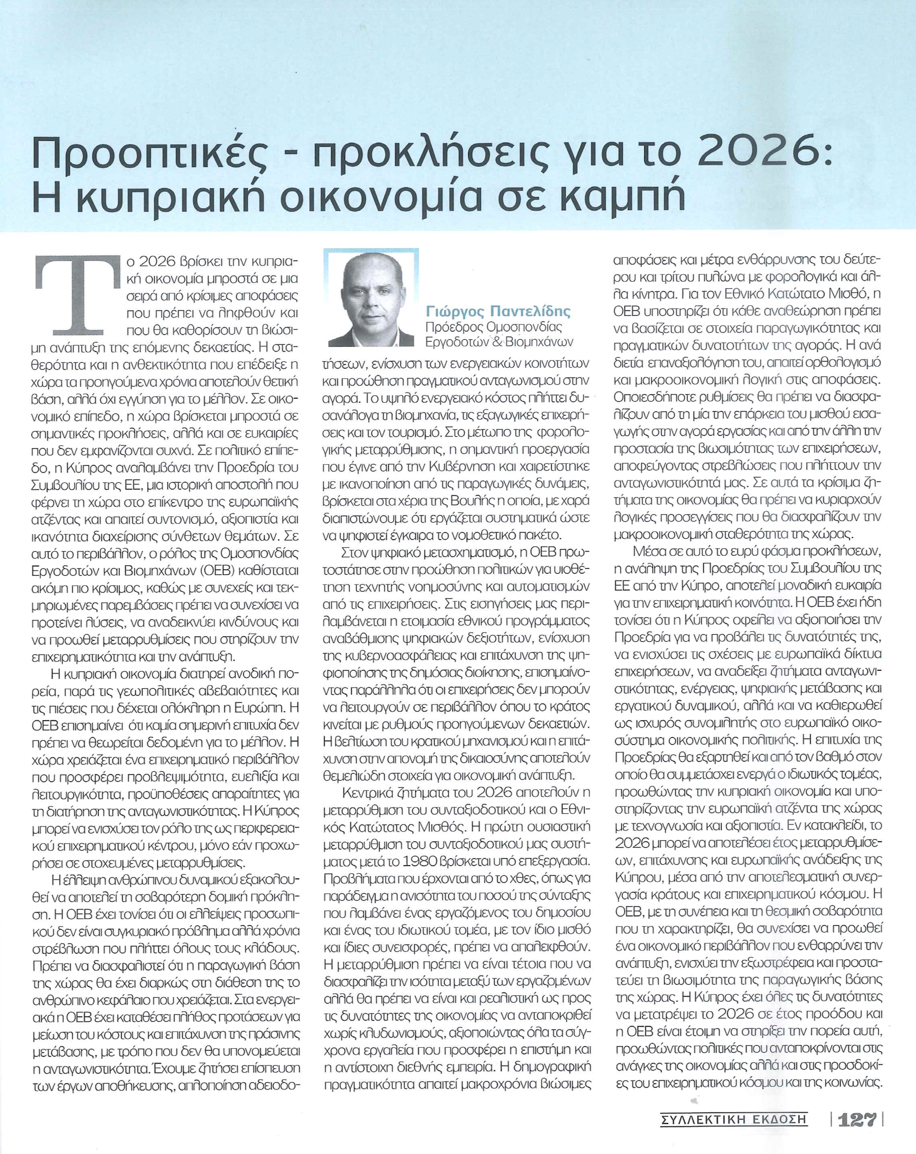 “Προκλήσεις – Προοπτικές για το 2026. Η κυπριακή Οικονομία σε καμπή”. Τοποθέτηση του Προέδρου της ΟΕΒ Γιώργου Παντελίδη.
