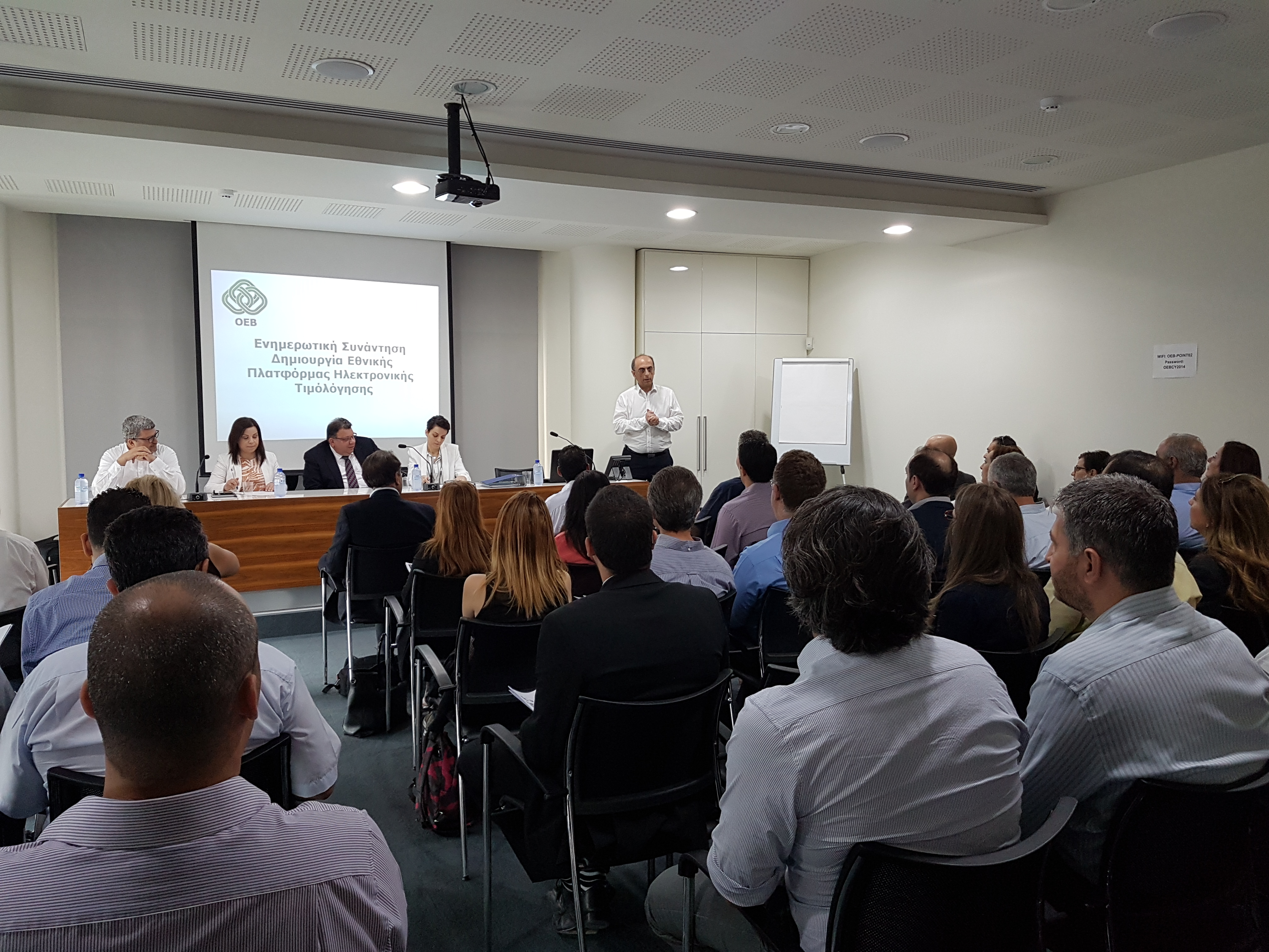 H Ομοσπονδία Εργοδοτών και Βιομηχάνων Κύπρου (ΟΕΒ) διοργάνωσε ενημερωτική συνάντηση για τα Μέλη της με θέμα την «Δημιουργία Εθνικής Πλατφόρμας Ηλεκτρονικής Τιμολόγησης», την Τρίτη 23 Μαΐου 2017, στα γραφεία της. Στην συνάντηση παρουσιάστηκε η εφαρμογή των κατάλληλων τεχνικών λύσεων για δημιουργία του σωστού διοικητικού και ρυθμιστικού πλαισίου, που θα διασφαλίζει την ανταλλαγή ηλεκτρονικών τιμολογίων μεταξύ του ιδιωτικού τομέα και της Κυβέρνησης (B2G).